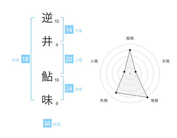 逆井 鮎味さんを姓名の画数から五運を鑑定