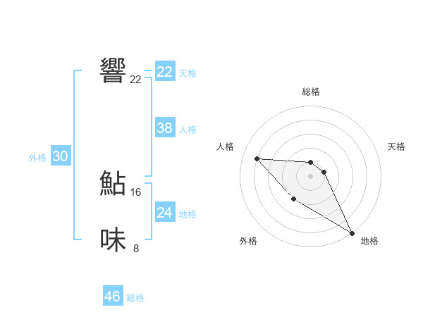 響 鮎味さんの天格は22画の1点!