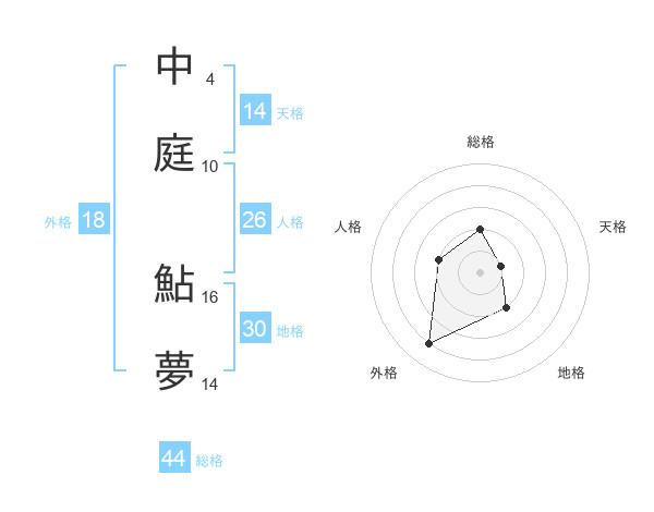 中庭 鮎夢さんの総格は44画の2点!