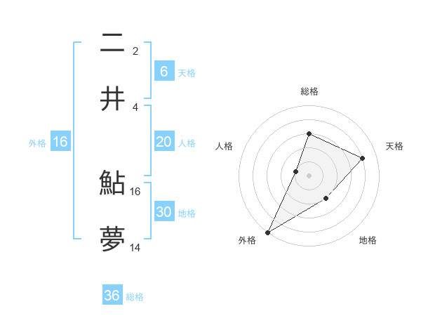 二井 鮎夢さんを姓名の画数から五運を鑑定