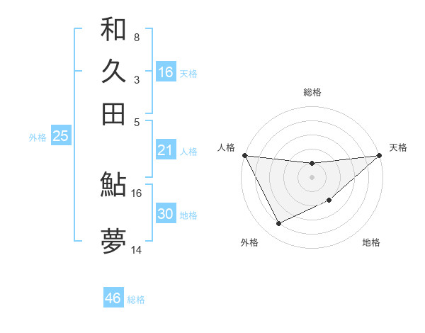 和久田 鮎夢さんを姓名の画数から五運を鑑定