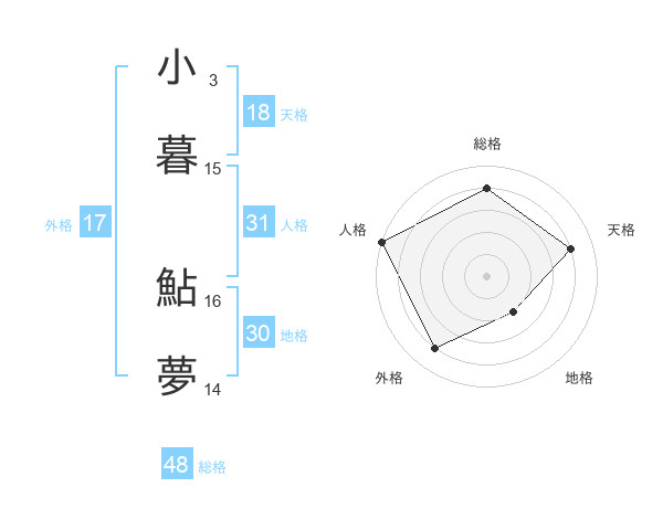 小暮 鮎夢さんの天格は18画の4点!