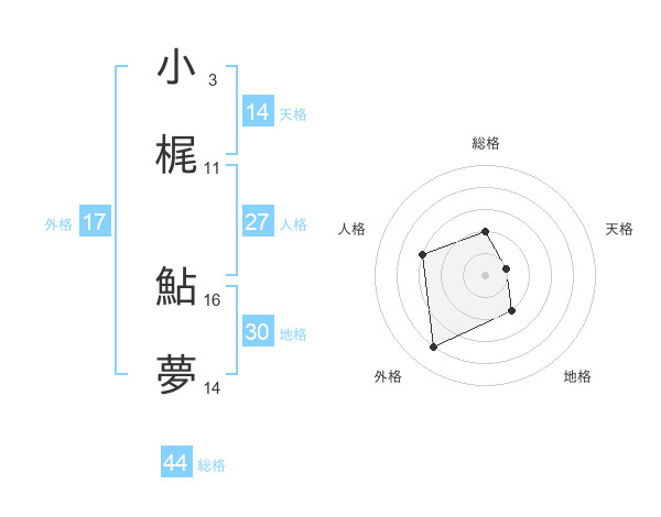 小梶 鮎夢さんを姓名の画数から五運を鑑定