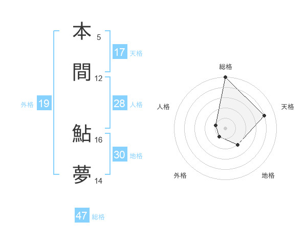 本間 鮎夢さんの総格は47画の5点!