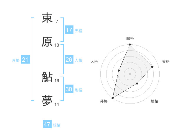 束原 鮎夢さんを姓名の画数から五運を鑑定