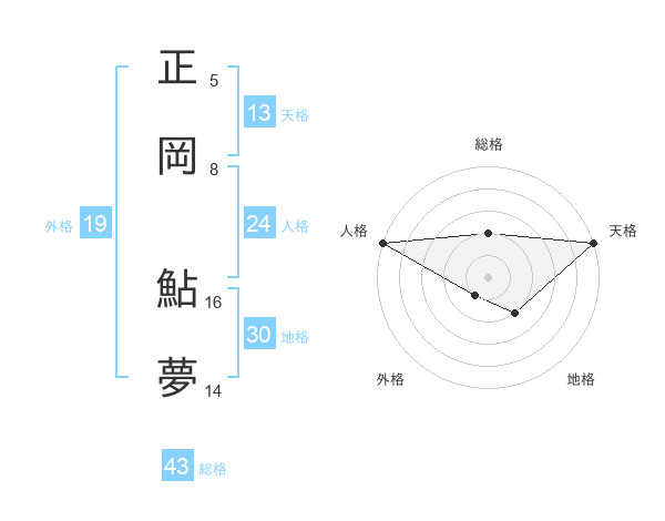 正岡 鮎夢さんの天格は13画の5点!