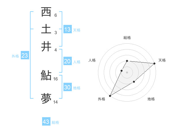 西土井 鮎夢さんを姓名の画数から五運を鑑定