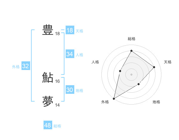 豊 鮎夢さんの総格は48画の4点!