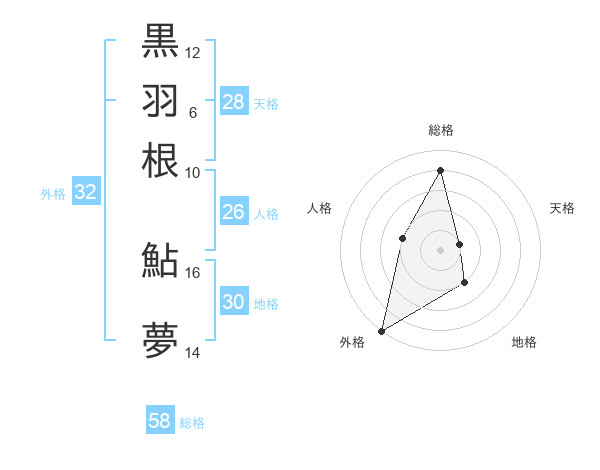 黒羽根 鮎夢さんを姓名の画数から五運を鑑定