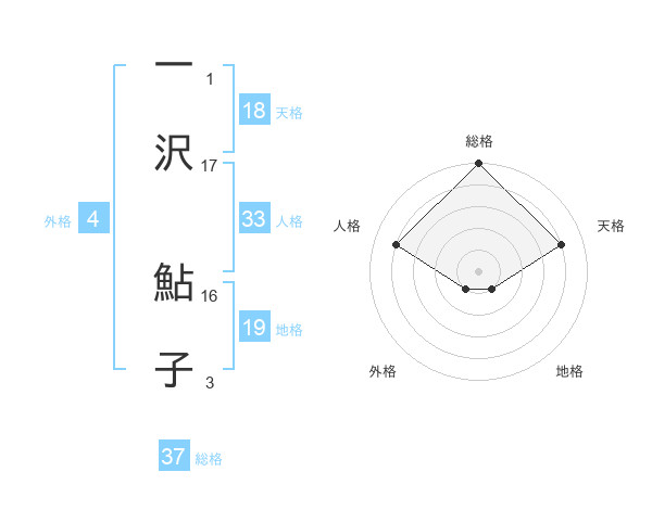 一沢 鮎子さんの総格は37画の5点!