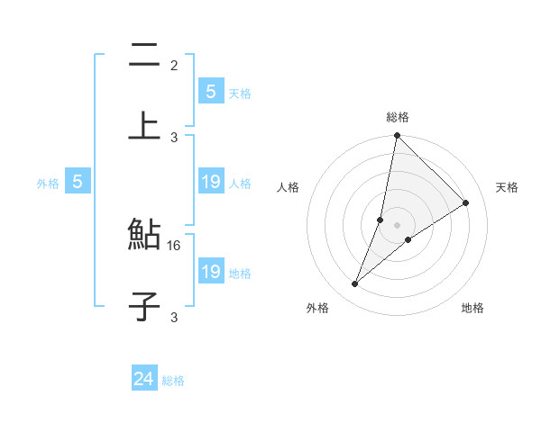 二上 鮎子さんを姓名の画数から五運を鑑定
