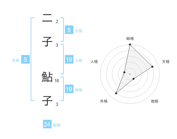 二子 鮎子さんの天格は5画の4点!