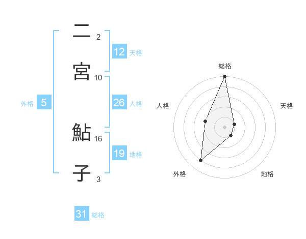 二宮 鮎子さんを姓名の画数から五運を鑑定
