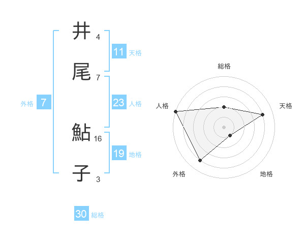 井尾 鮎子さんを姓名の画数から五運を鑑定