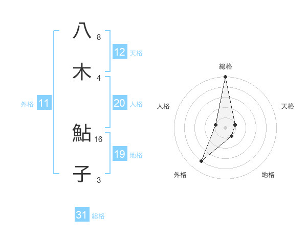八木 鮎子さんを姓名の画数から五運を鑑定