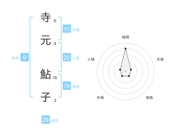 寺元 鮎子さんを姓名の画数から五運を鑑定