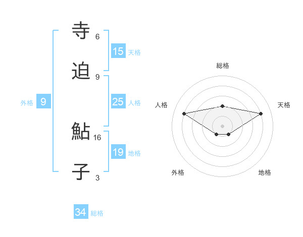 寺迫 鮎子さんの天格は15画の4点!