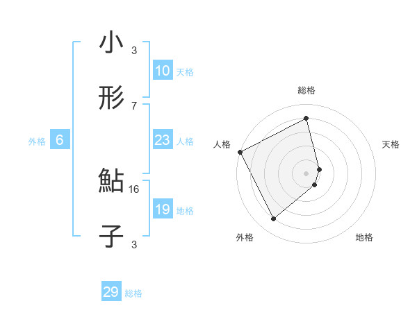 小形 鮎子さんの総格は29画の4点!