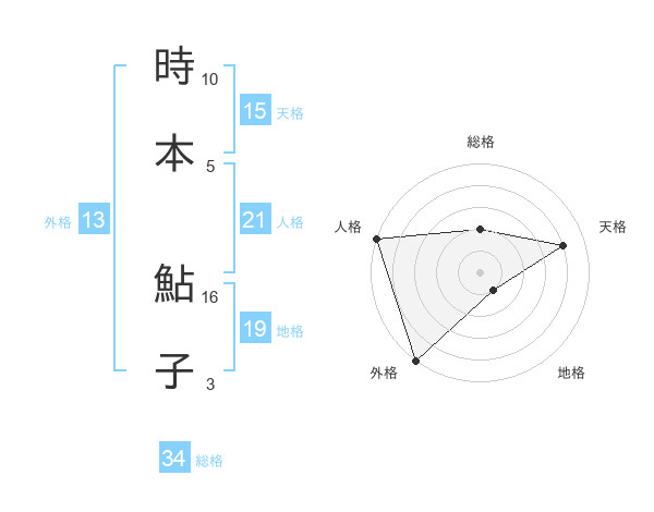 時本 鮎子さんの外格は13画の5点!