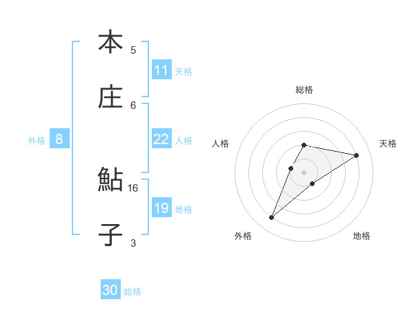 本庄 鮎子さんを姓名の画数から五運を鑑定