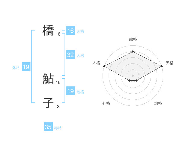 橋 鮎子さんの天格は16画の5点!