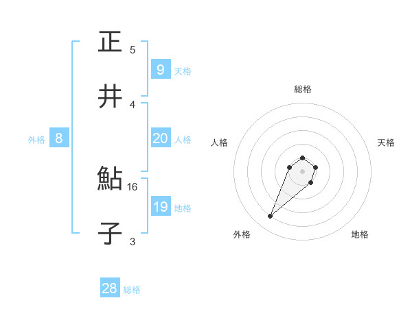 正井 鮎子さんの総格は28画の1点!