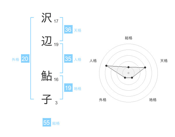 沢辺 鮎子さんを姓名の画数から五運を鑑定