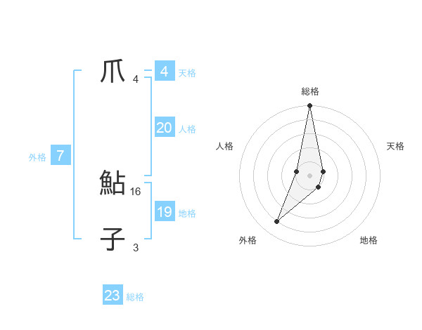 爪 鮎子さんの総格は23画の5点!
