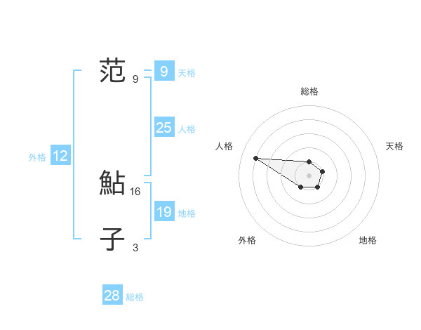 范 鮎子さんの総格は28画の1点!