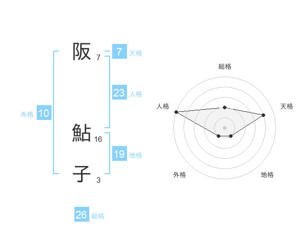 阪 鮎子さんを姓名の画数から五運を鑑定