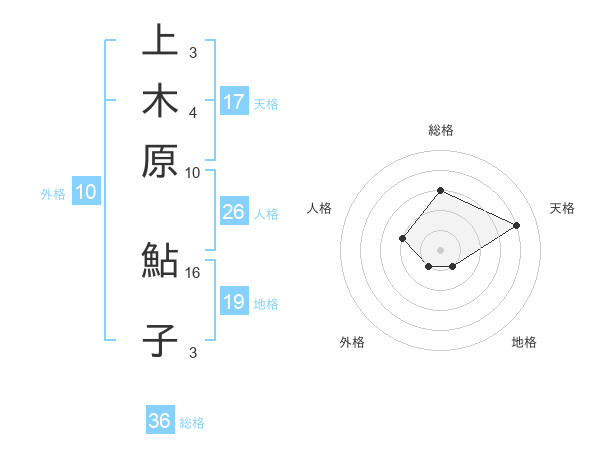 上木原 鮎子さんの天格は17画の4点!