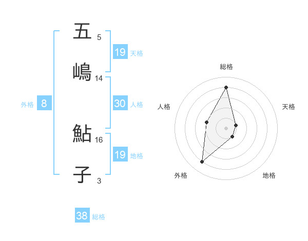 五嶋 鮎子さんを姓名の画数から五運を鑑定