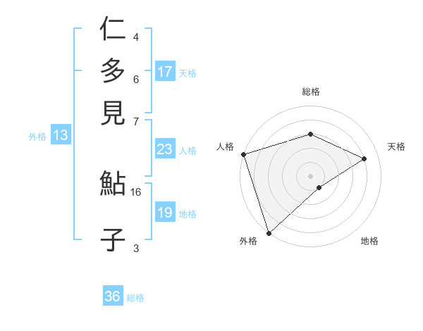 仁多見 鮎子さんの外格は13画の5点!