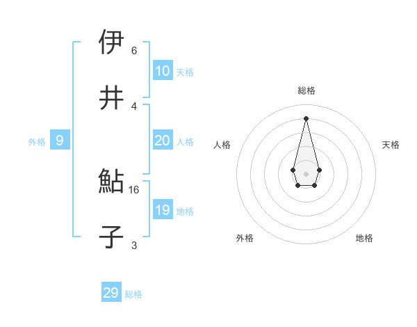 伊井 鮎子さんの総格は29画の4点!