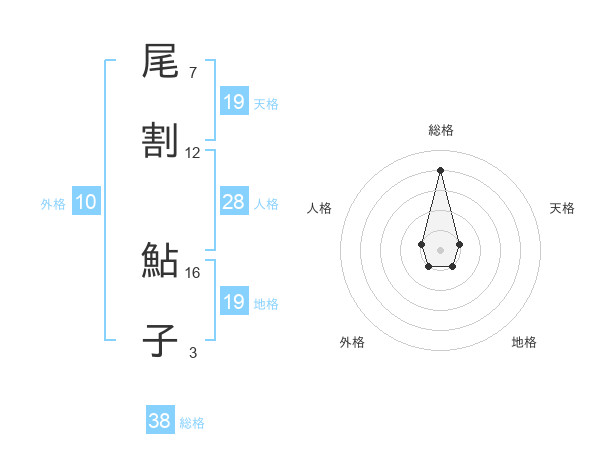 尾割 鮎子さんを姓名の画数から五運を鑑定
