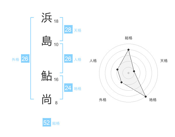 浜島 鮎尚さんを姓名の画数から五運を鑑定