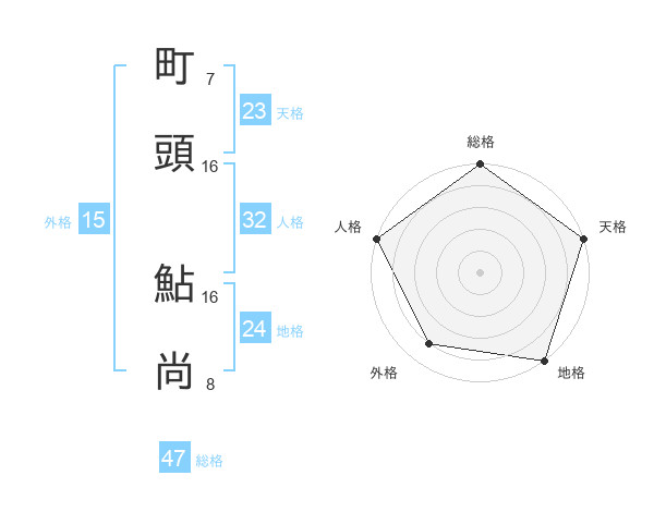 町頭 鮎尚さんを姓名の画数から五運を鑑定