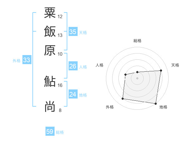 粟飯原 鮎尚さんの総格は59画の1点!