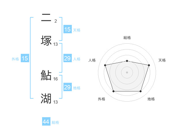 二塚 鮎湖さんの総格は44画の2点!