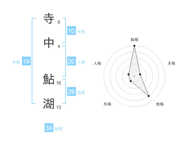 寺中 鮎湖さんの総格は39画の5点!