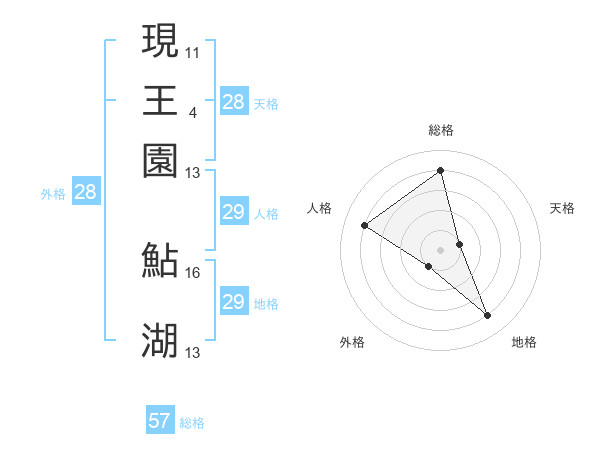 現王園 鮎湖さんを姓名の画数から五運を鑑定