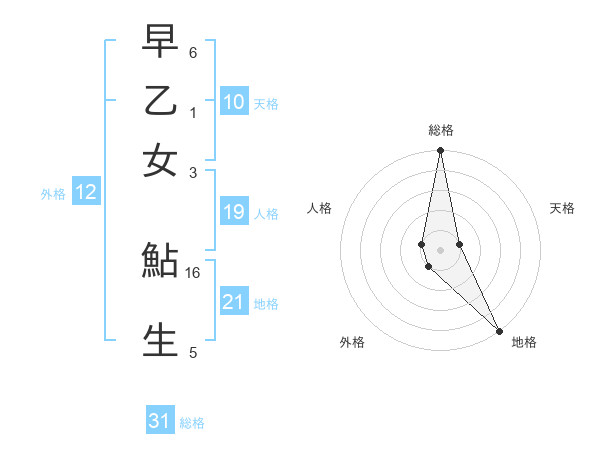 早乙女 鮎生さんを姓名の画数から五運を鑑定