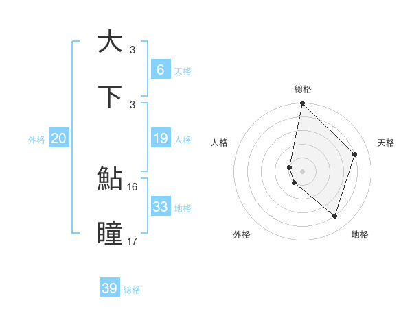 大下 鮎瞳さんを姓名の画数から五運を鑑定