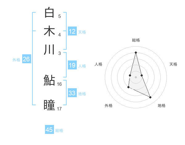白木川 鮎瞳さんの総格は45画の4点!