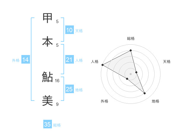 甲本 鮎美さんを姓名の画数から五運を鑑定