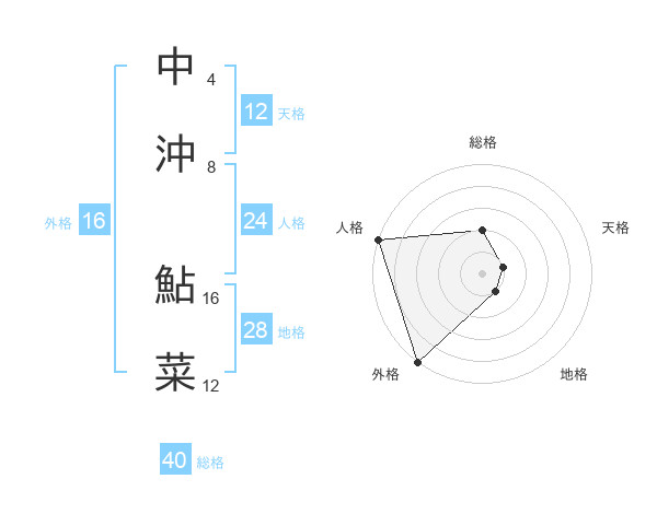中沖 鮎菜さんを姓名の画数から五運を鑑定