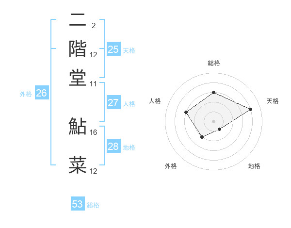 二階堂 鮎菜さんの天格は25画の4点!