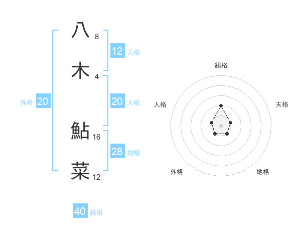 八木 鮎菜さんの総格は40画の2点!