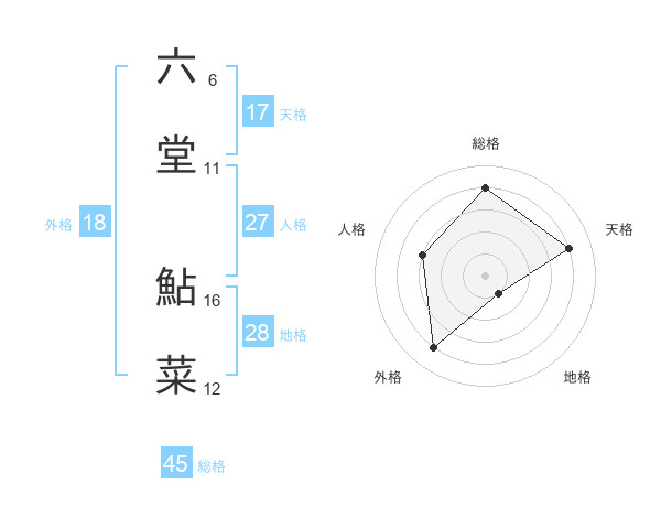 六堂 鮎菜さんの総格は45画の4点!