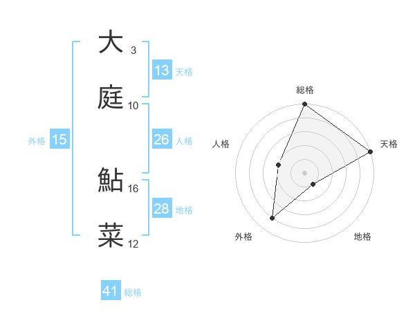 大庭 鮎菜さんの総格は41画の5点!